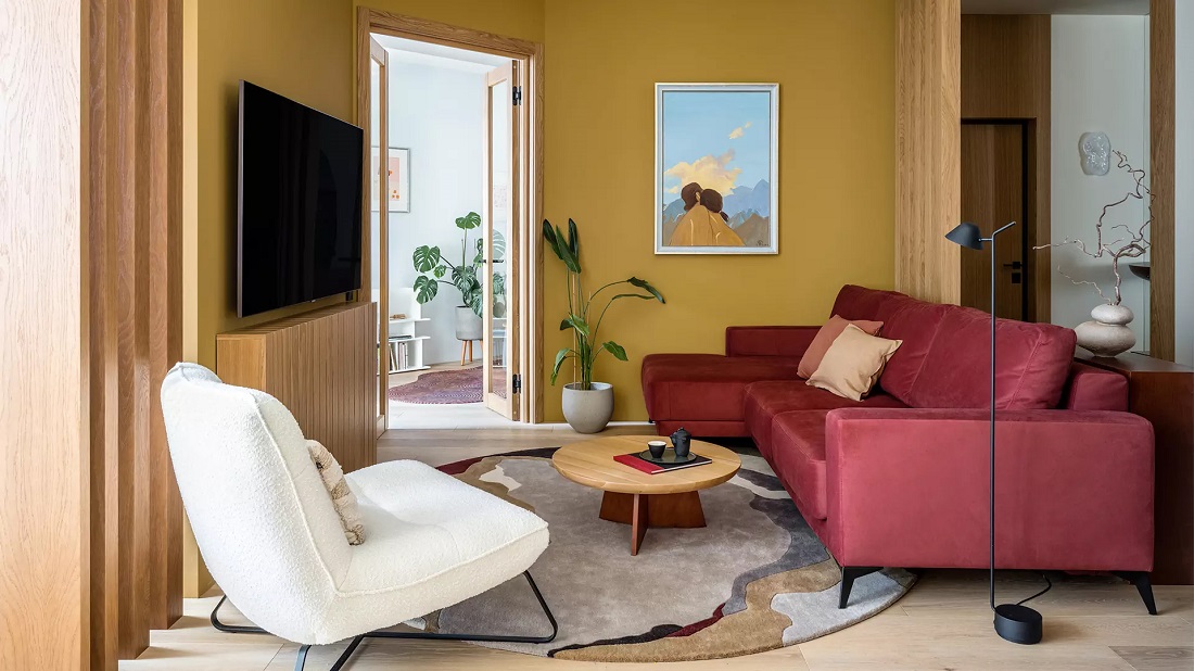 Яркие оттенки отлично работают в деталях, но могут быть и основой интерьера.